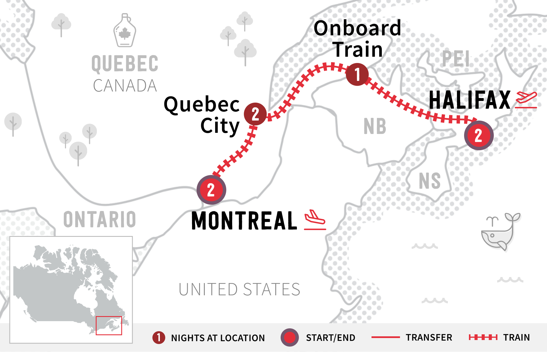 Explore Montreal, Quebec City and Halifax! Spend just over a week traveling between Quebec and the Maritimes on an overnight train, exploring each destination with an insider guide.