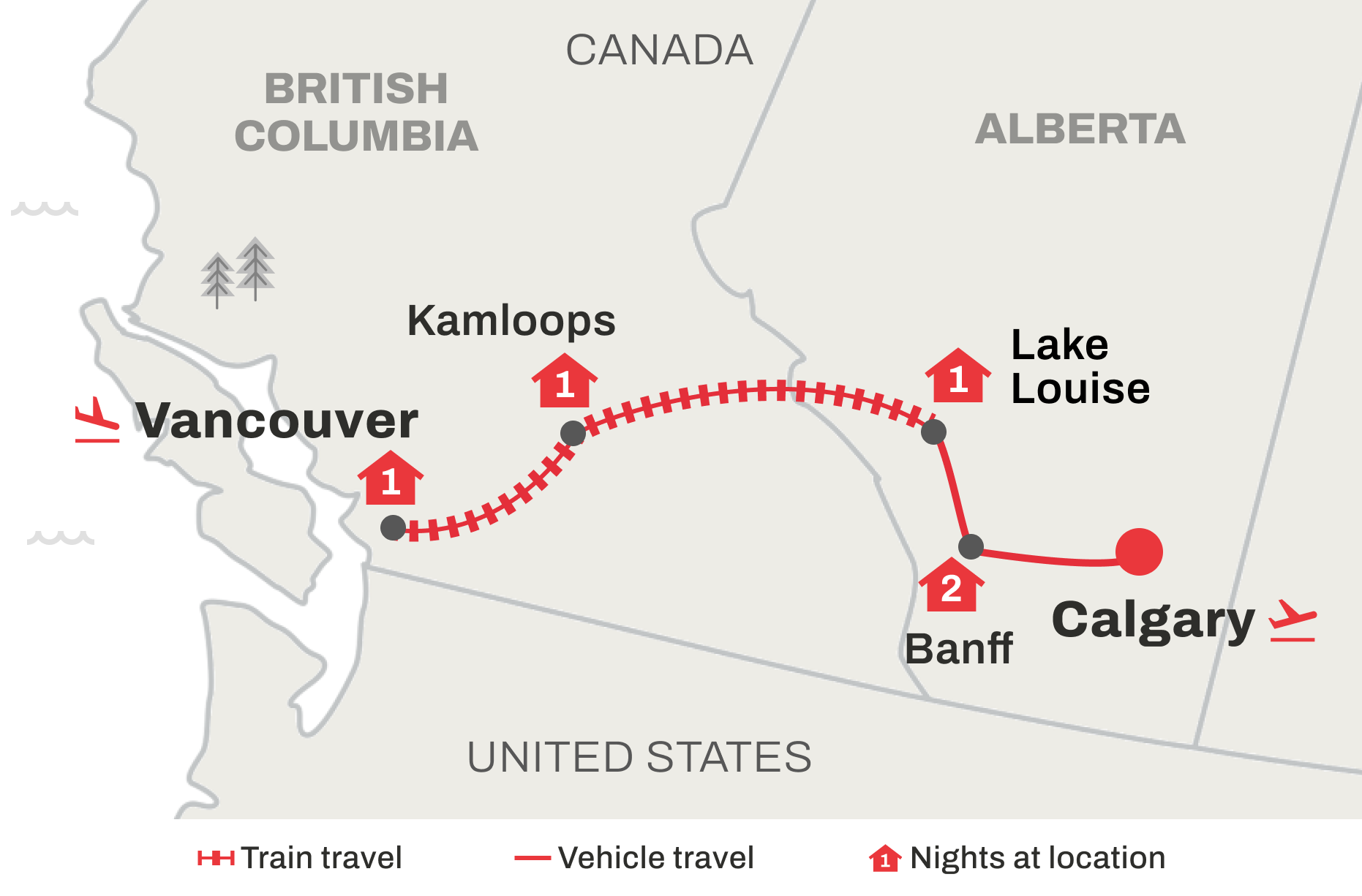 Another day of your train journey begins as you re-board the Rocky Mountaineer. Soon you'll be traveling past the glittering lakes and glaciers of the Canadian Rockies. Arrive in Lake Louise this evening.