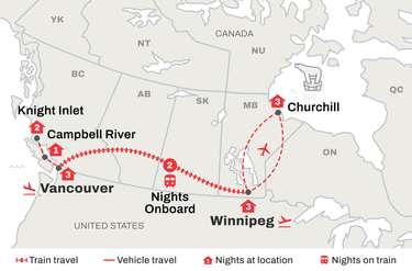 Witness polar bears and grizzly bears in their natural habitat and travel across Canada on VIA Rail’s The Canadian train. From the lush, abundant Great Bear Rainforest to the barren arctic tundra of Churchill – no safari better represents Canada’s immense diversity. Space is limited, so be sure to book early!
